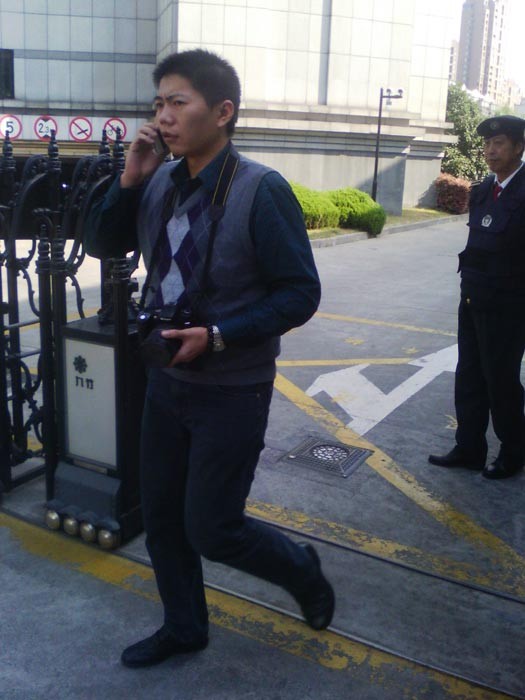 上海法轮功学员章有亮夫妇遭跟踪监视图为跟踪的恶人害怕被拍照曝光