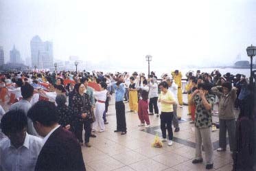 1999年7月法轮功遭受迫害之前,上海市法轮功学员集体炼功情景