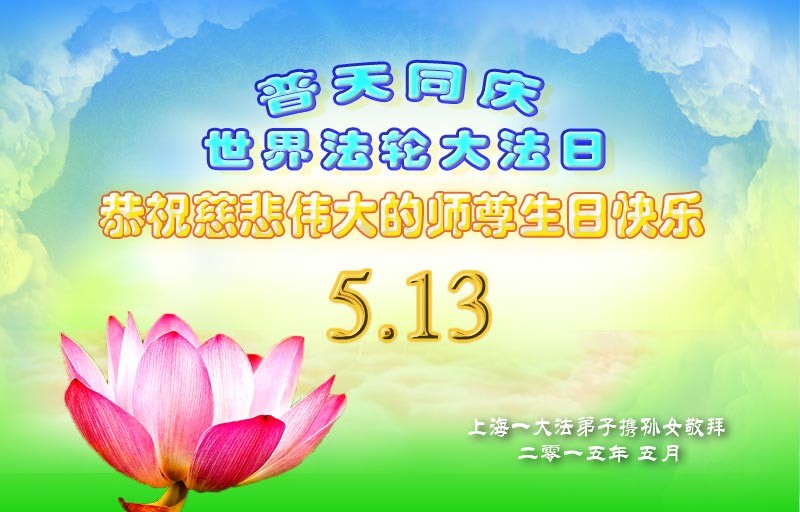 上海大法小弟子明镜恭祝师尊生日快乐!普天同庆5.13世界法轮大法日