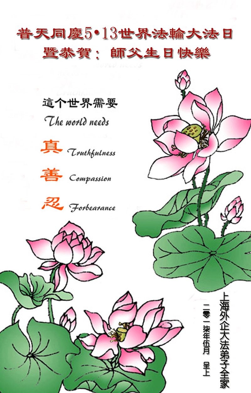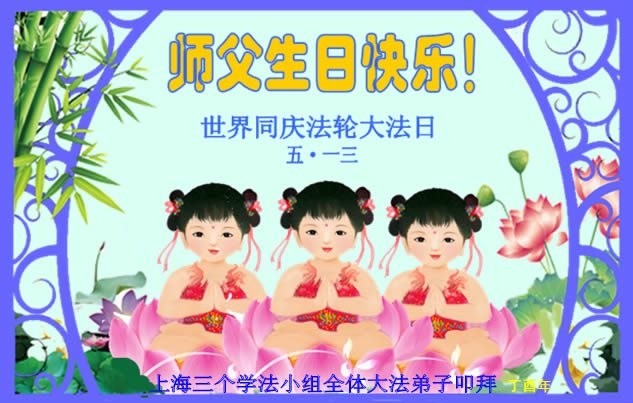 上海一家大法弟子恭祝师尊生日快乐!庆祝世界法轮大法日!
