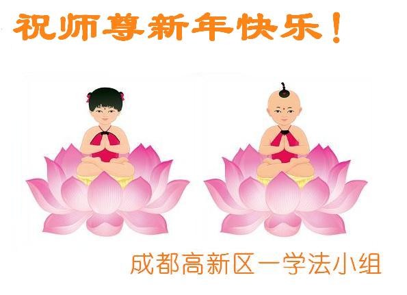 四川省成都某高校一老年夫妇大法弟子恭祝师父新年快乐