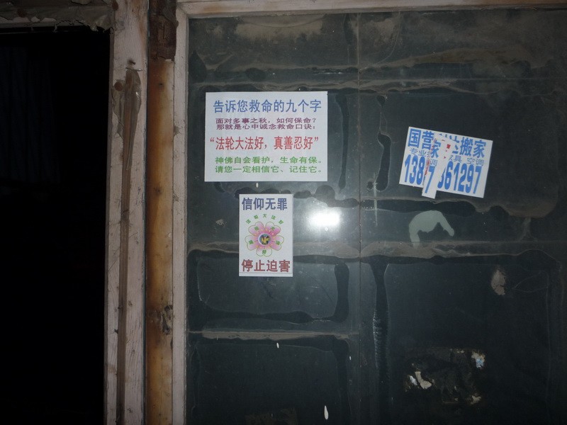 天津市居民楼道内的真相横幅