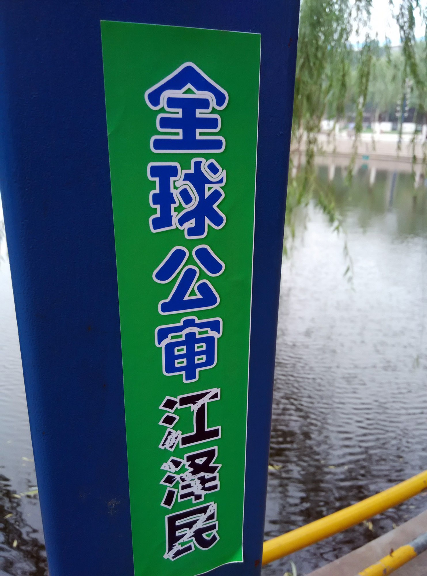 四二五前天津出现大型标语"全球起诉江泽民"