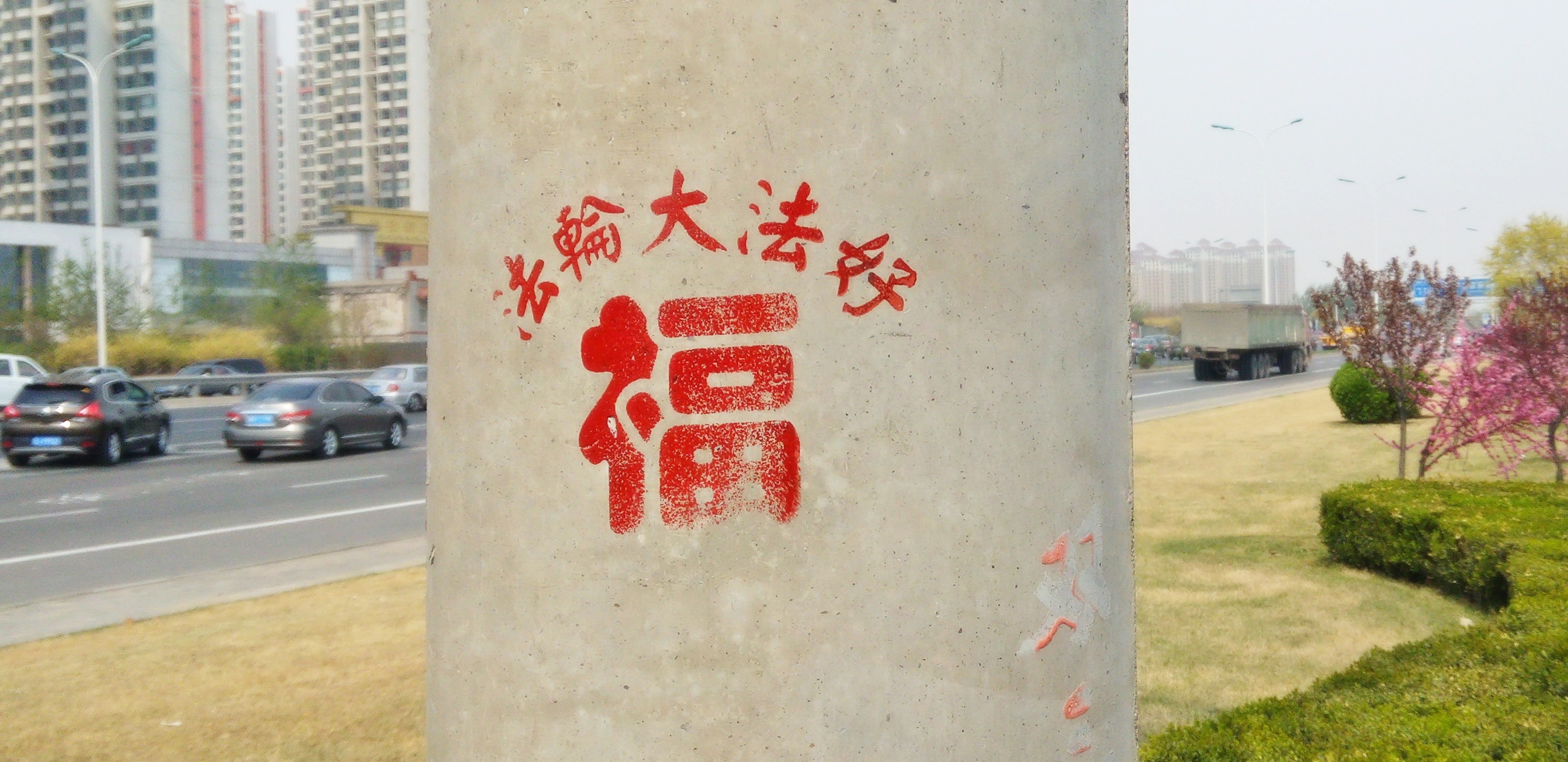 天津市多处出现"全球公审江泽民"、"法轮大法好"标语