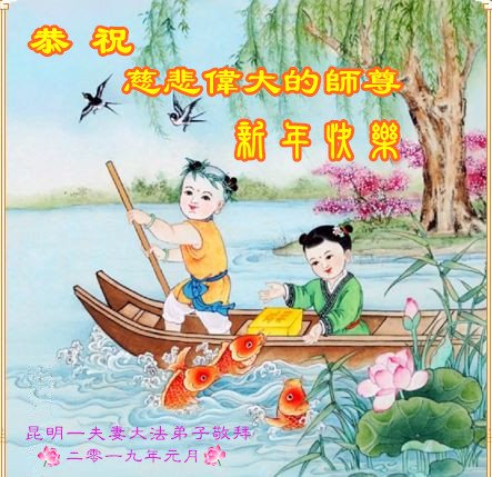 昆明市一个大法弟子和外孙恭祝师尊过年好