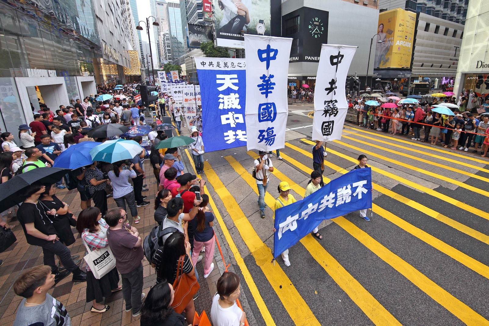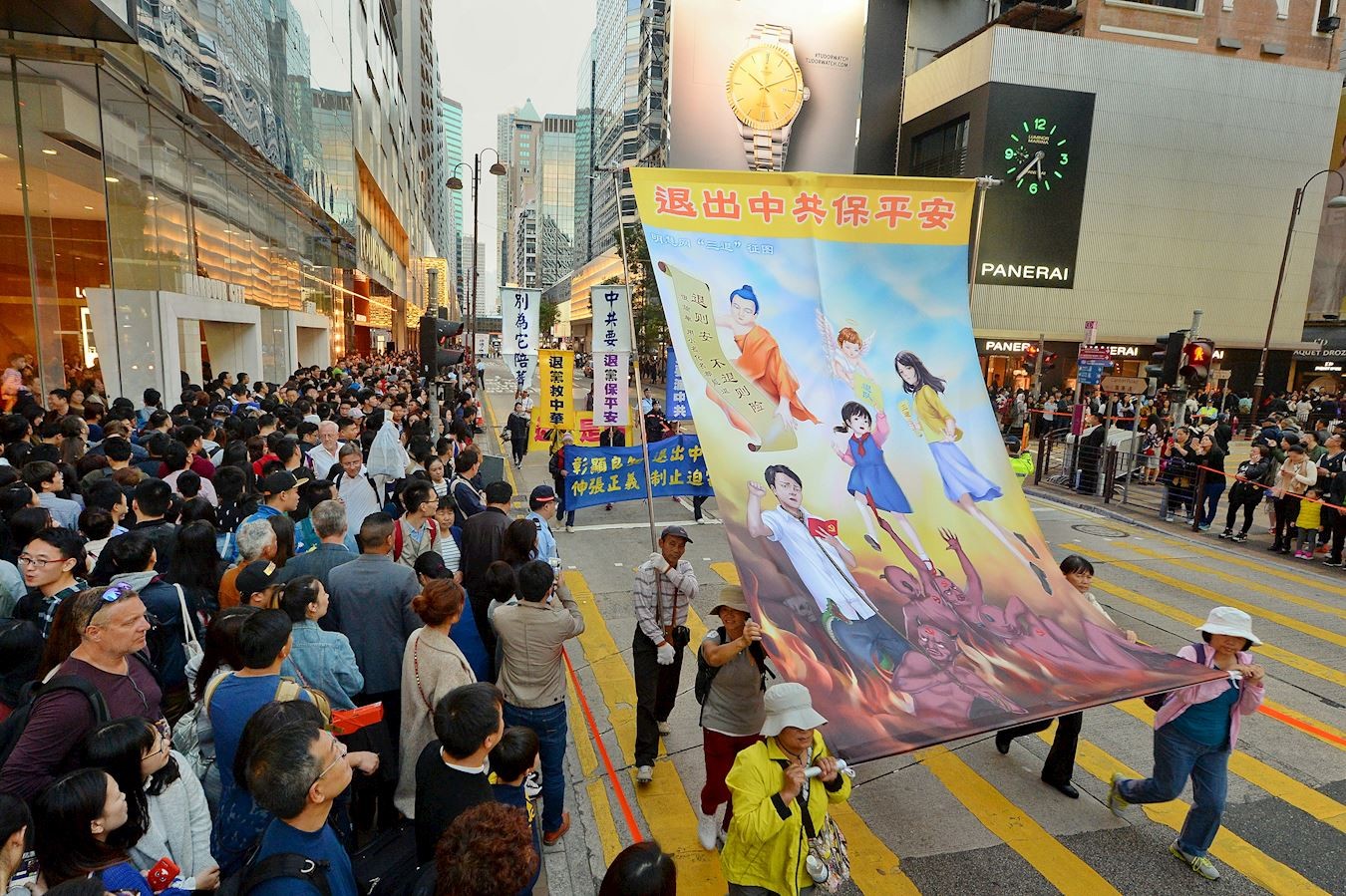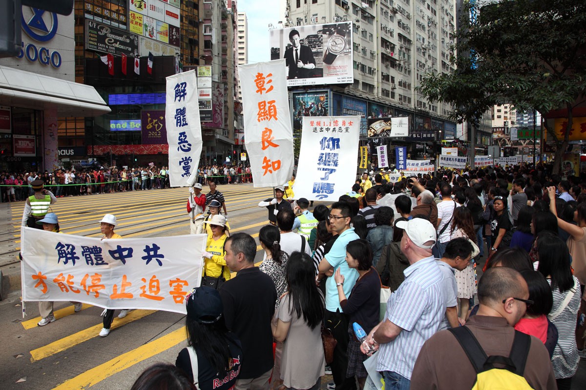 法轮功学员在香港十一举办"悼国殇 促三退"大游行