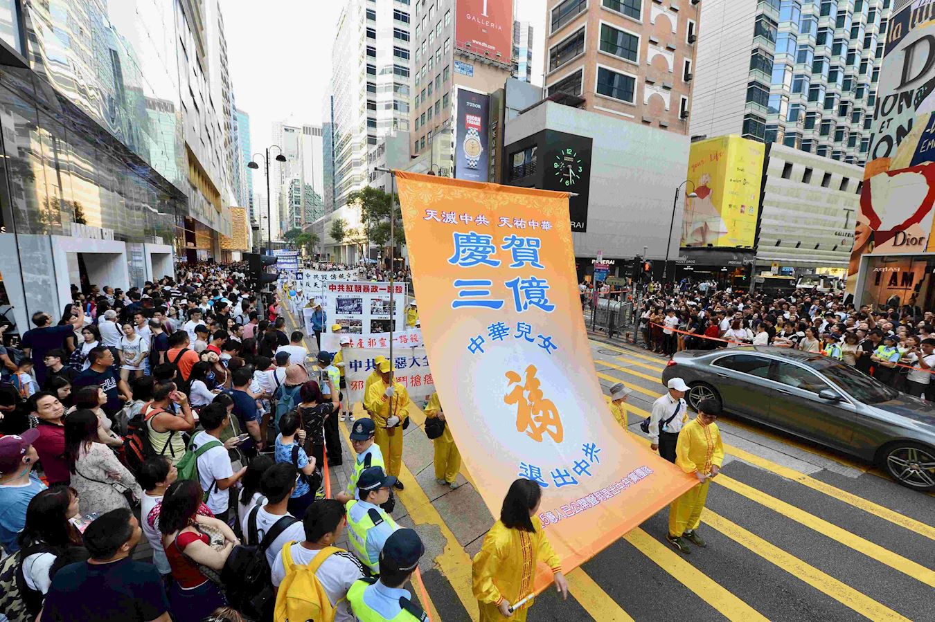 香港法轮功学员及支持团体举行"正义良知 解体中共"反对迫害、声援退党集会及游行