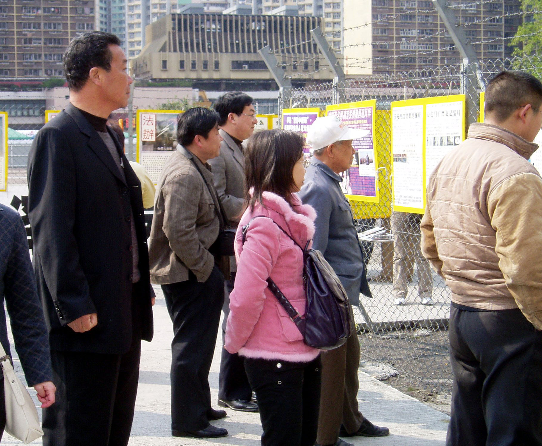 大陆中国游客在金紫荆观看法轮功真相看板