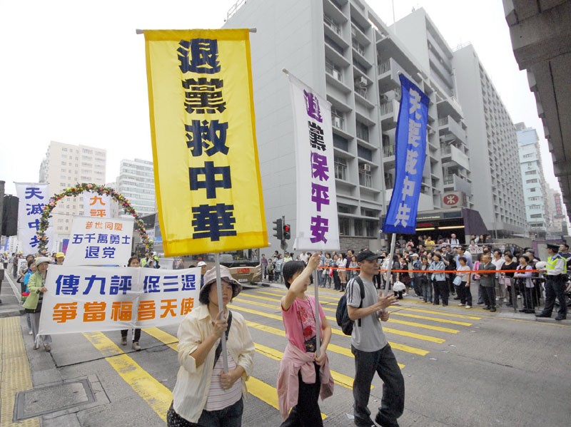 香港声援五千万人三退的游行,民众在认识到中共的邪恶本性后,纷纷声明"三退"