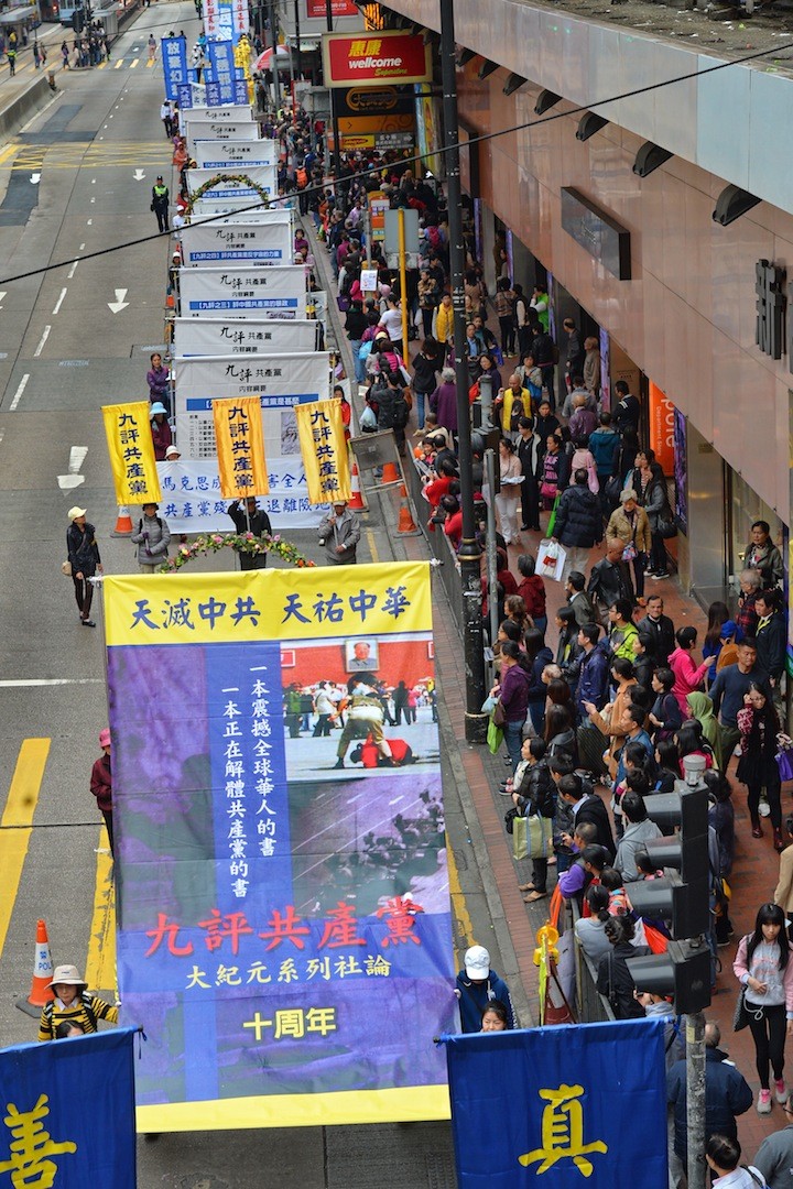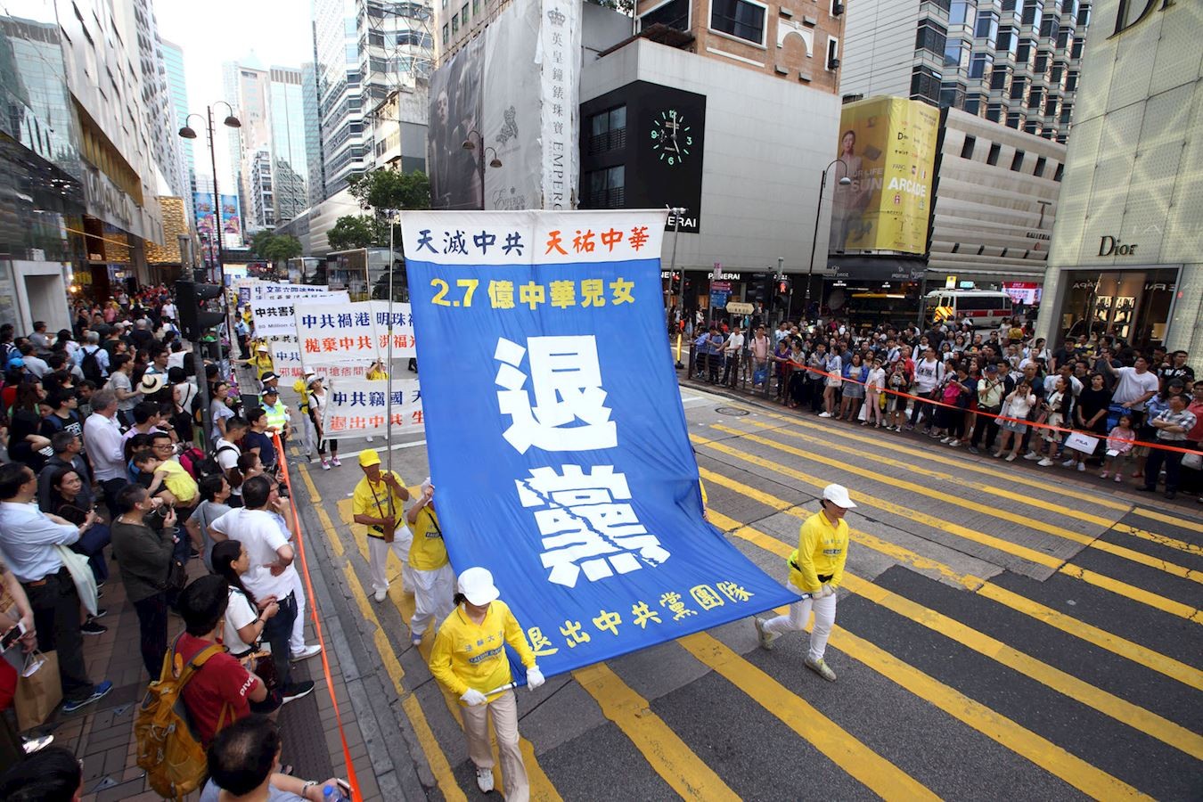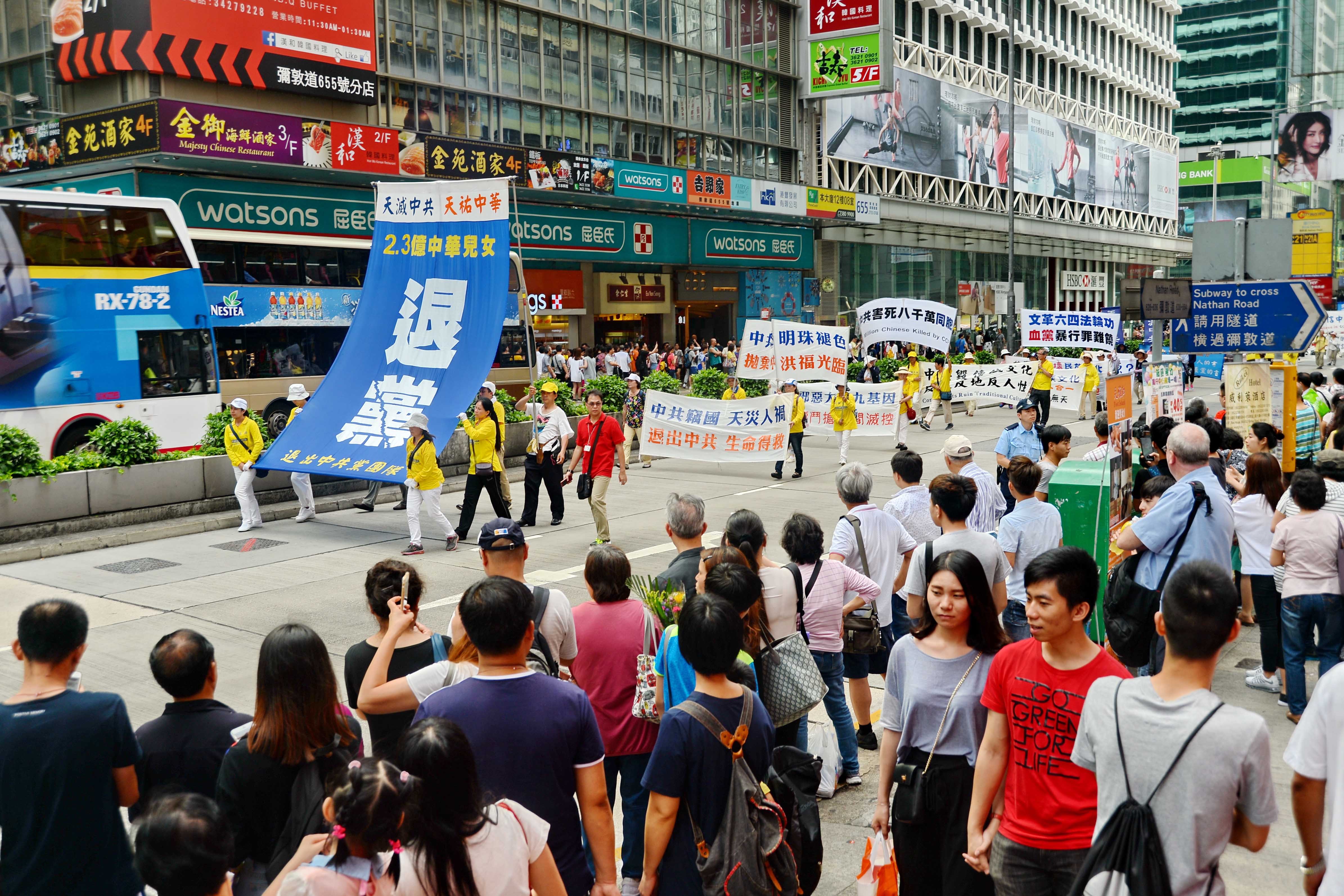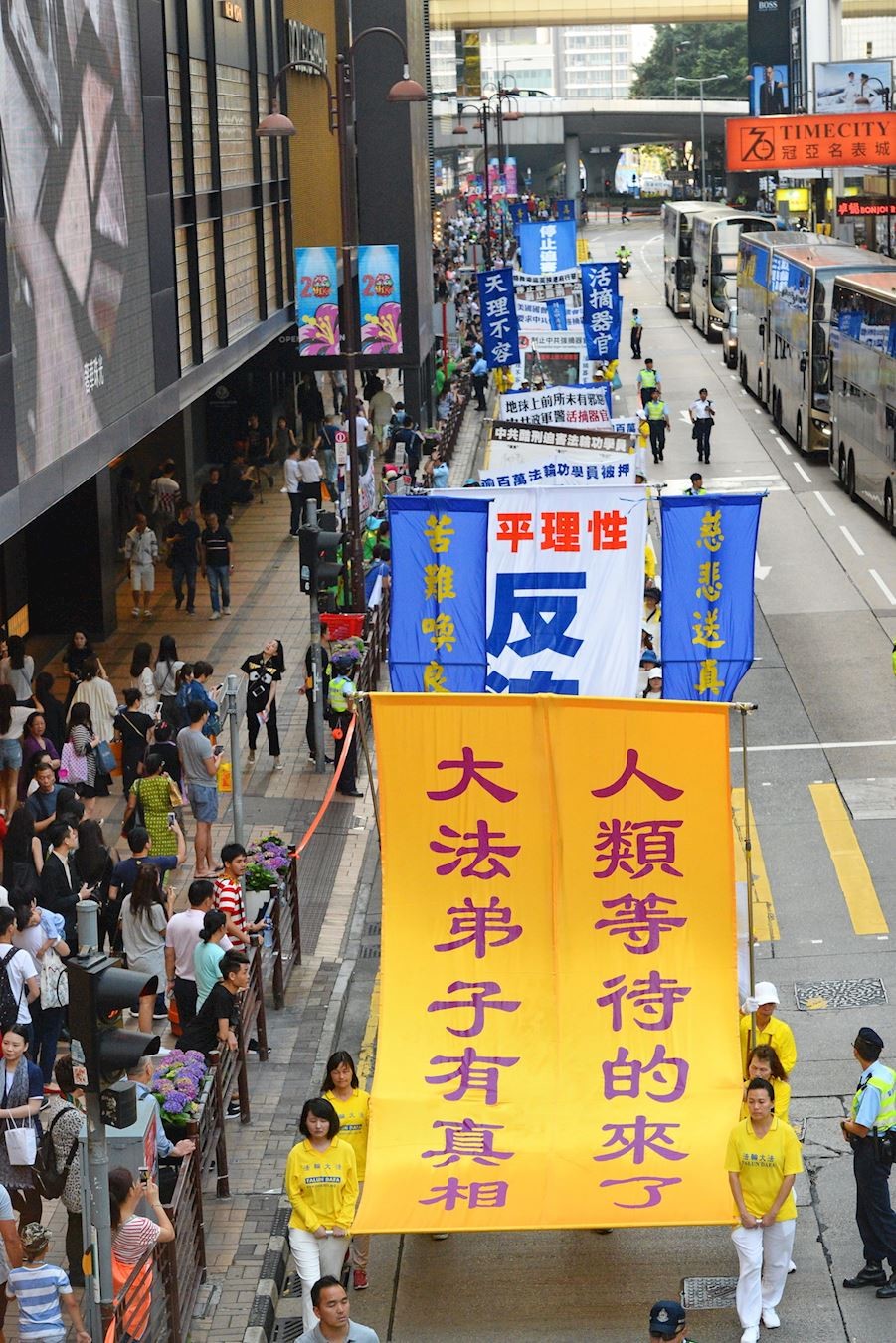 香港法轮大法学员在中政府前炼功请愿,要求中国政府停止迫害,还法轮大法清白. 香港