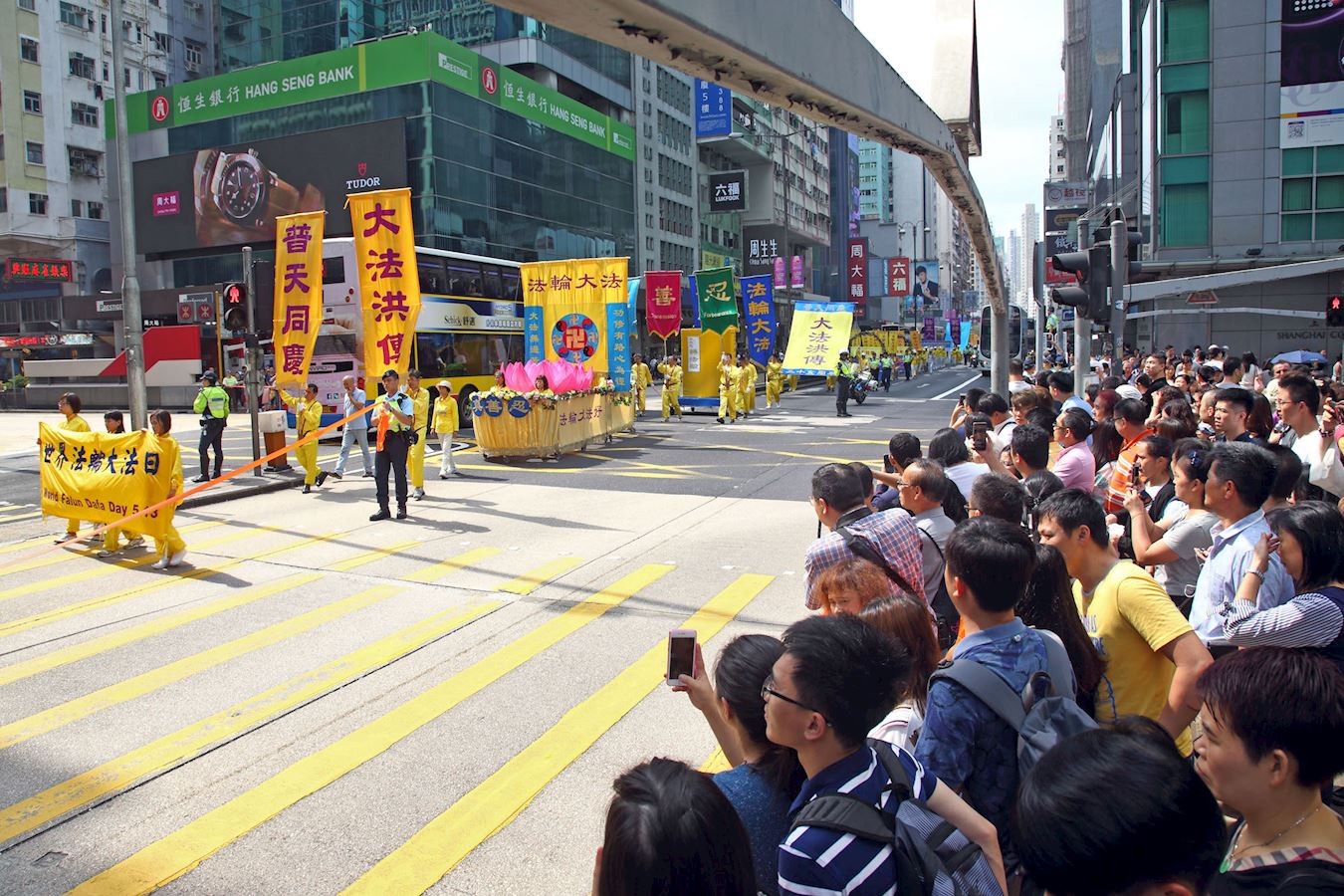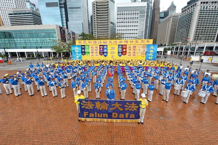香港法轮功学员大型排字炼功庆祝法轮大法日 香港 2002-5