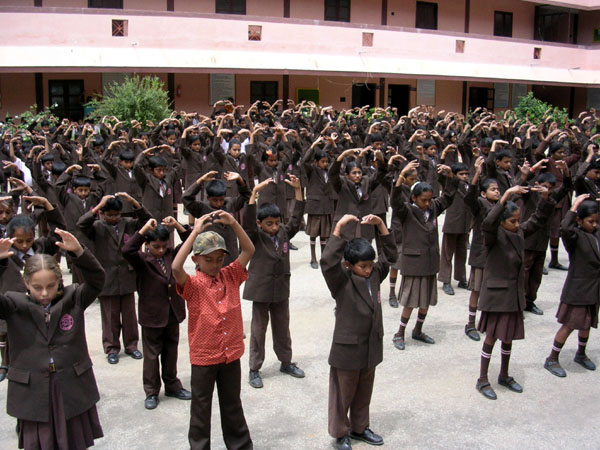 印度班加罗尔乡村学校的师生在集体炼功 2006-5-1-- 4