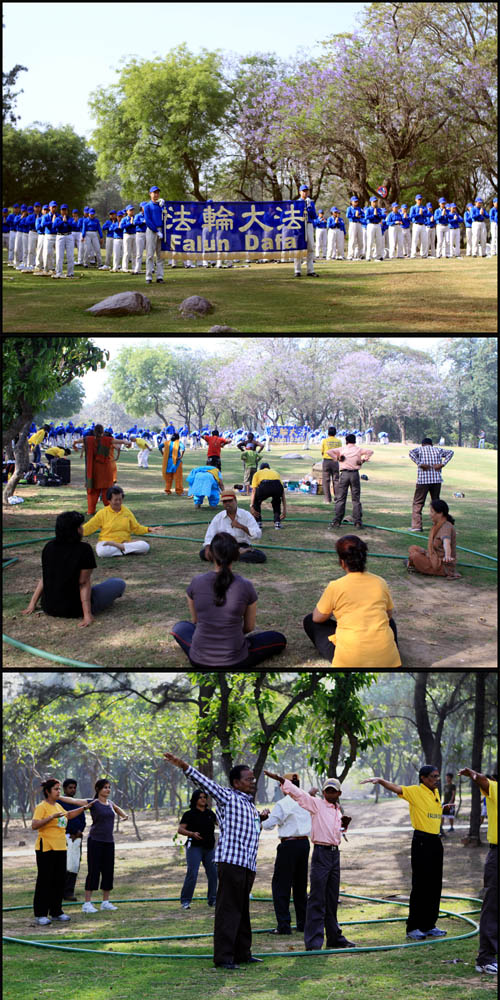 印度媒体刊文介绍法轮大法,深受民众的喜爱图为民众炼功