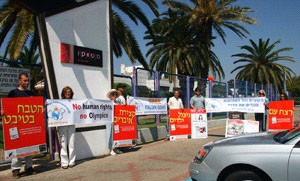 2004年7.20,法轮功在中国遭受镇压五年之际,以色列法轮功学员在特拉维夫市中国大使馆对面呼吁停止迫害