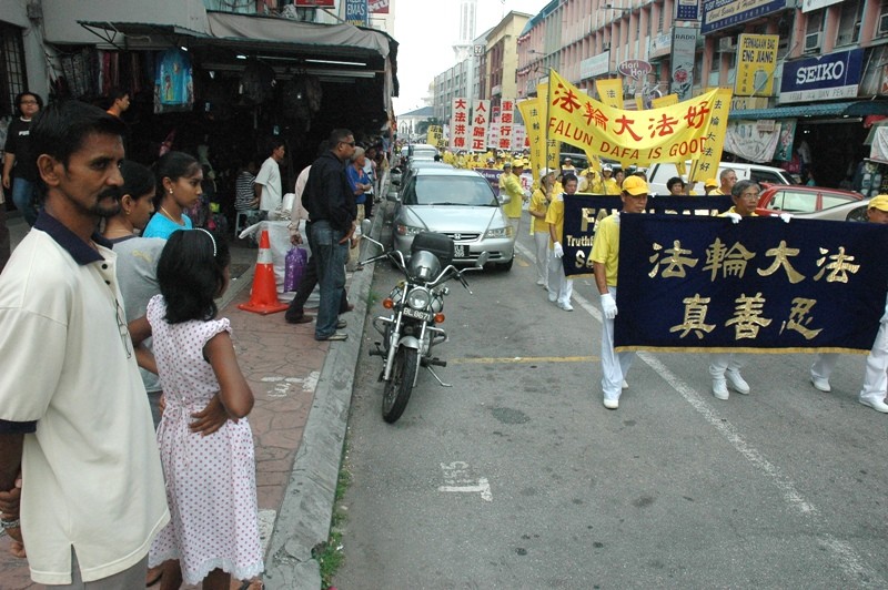 马来西亚学员举办游行,声援千万退党,揭露中共盗售法轮功学员器官兽行,图为路人 2006-4-23