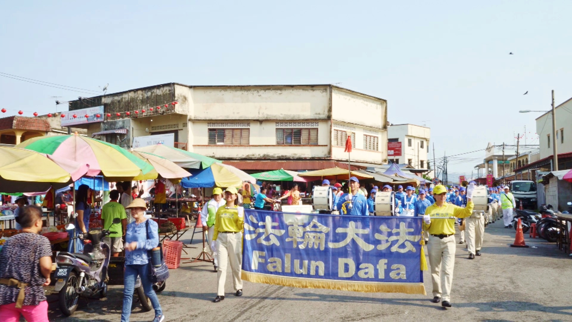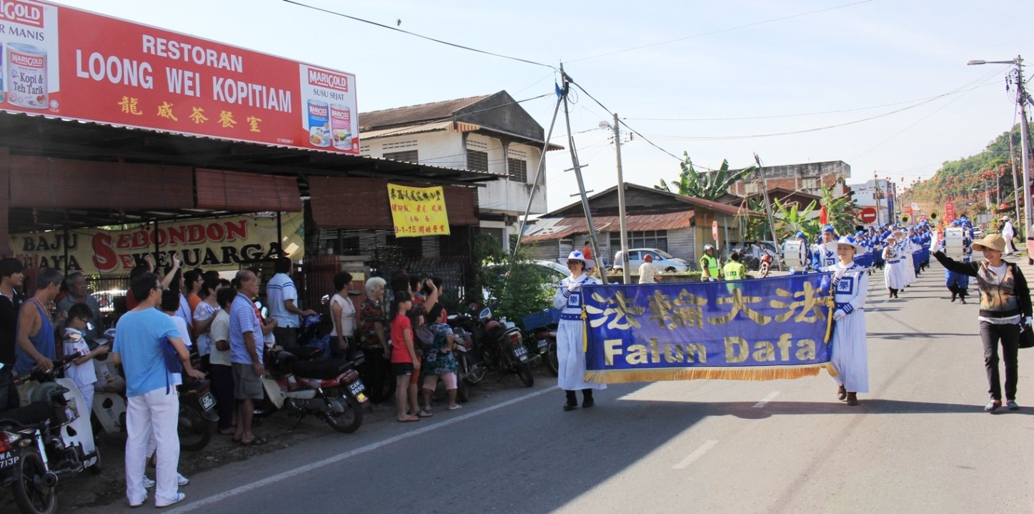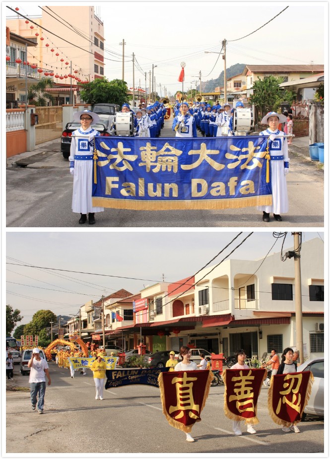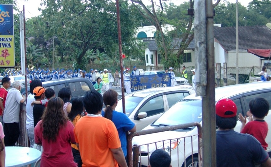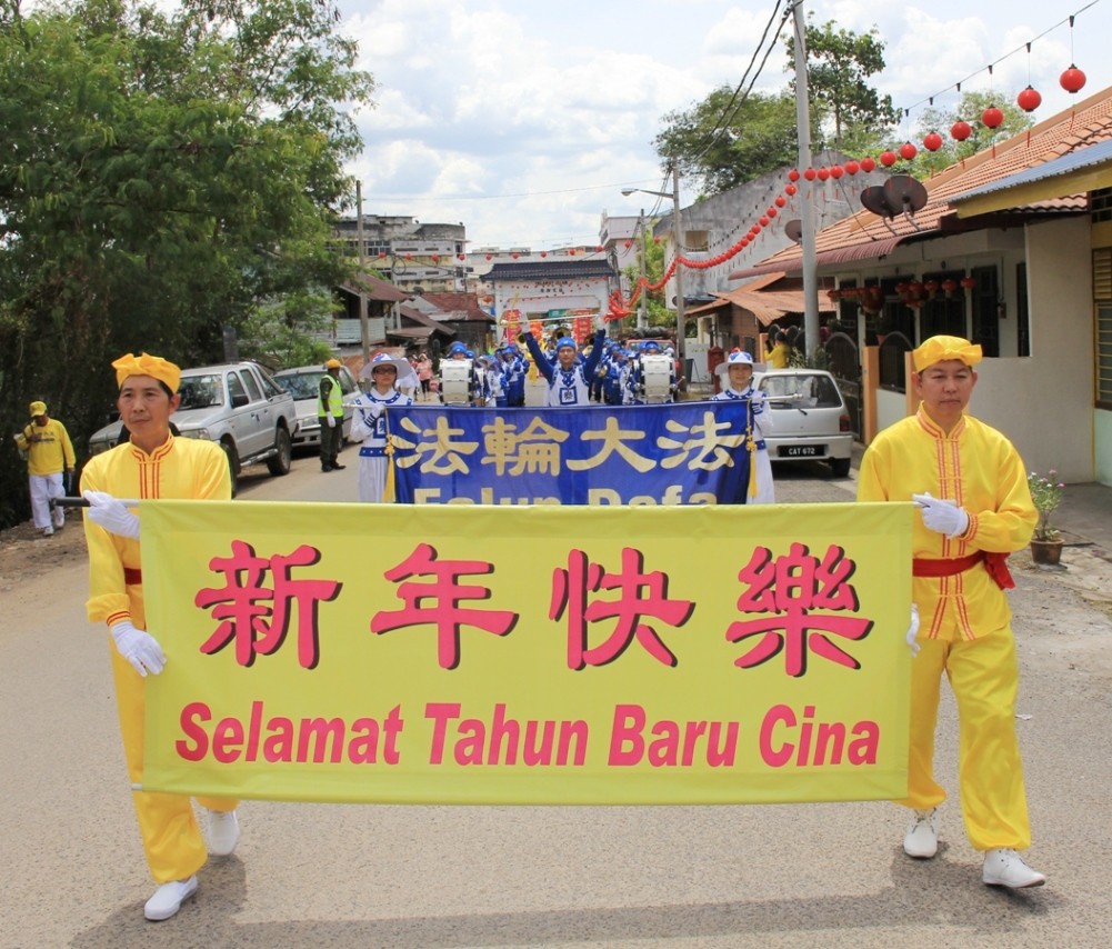 大年初三,法轮功学员来到了霹雳州华人聚集的拱桥新村举行新年游行