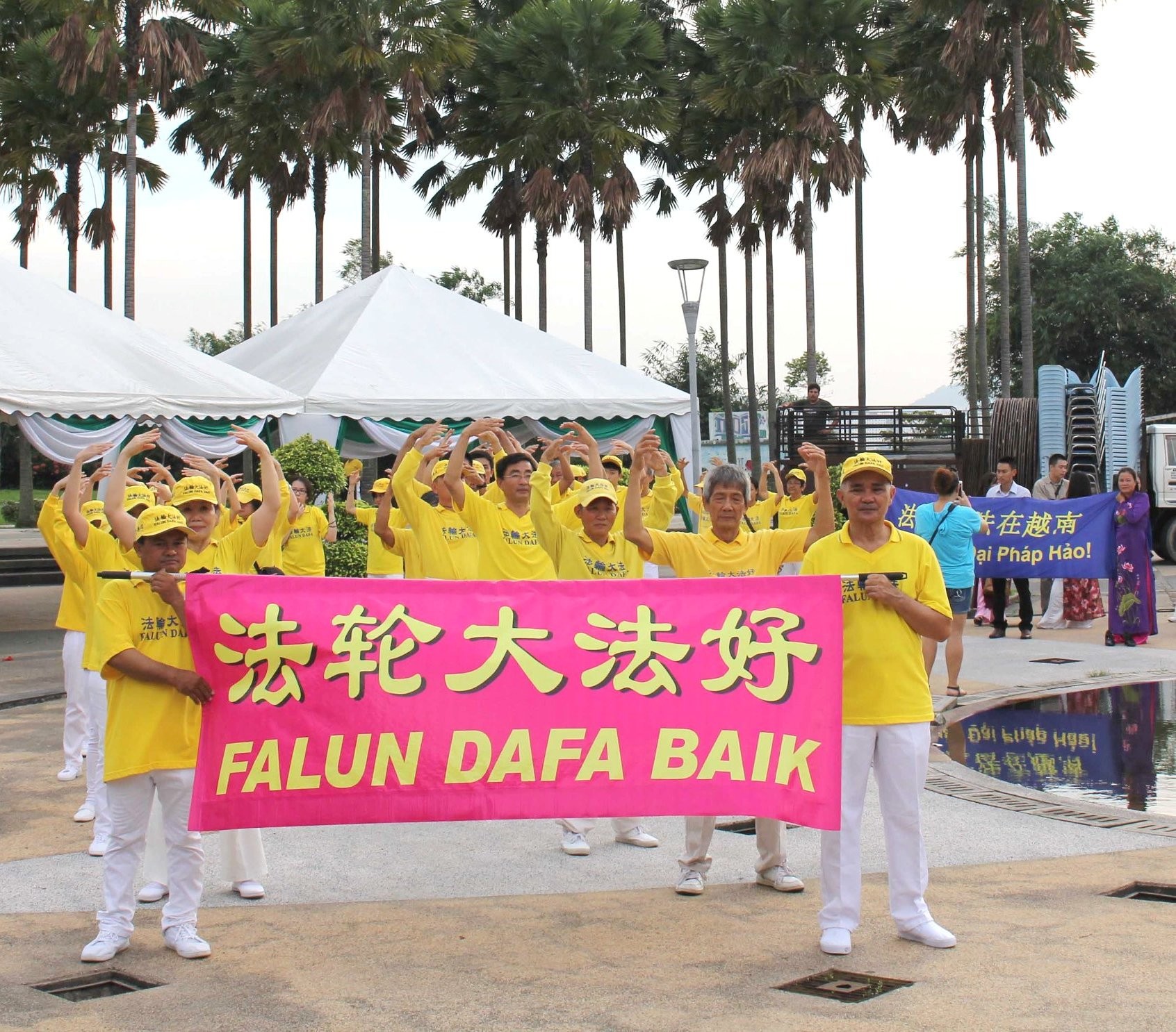 法轮功学员在马来西亚健康嘉年华会上绽放异彩图为环绕嘉年华会会场游行2007-6-29至7-1