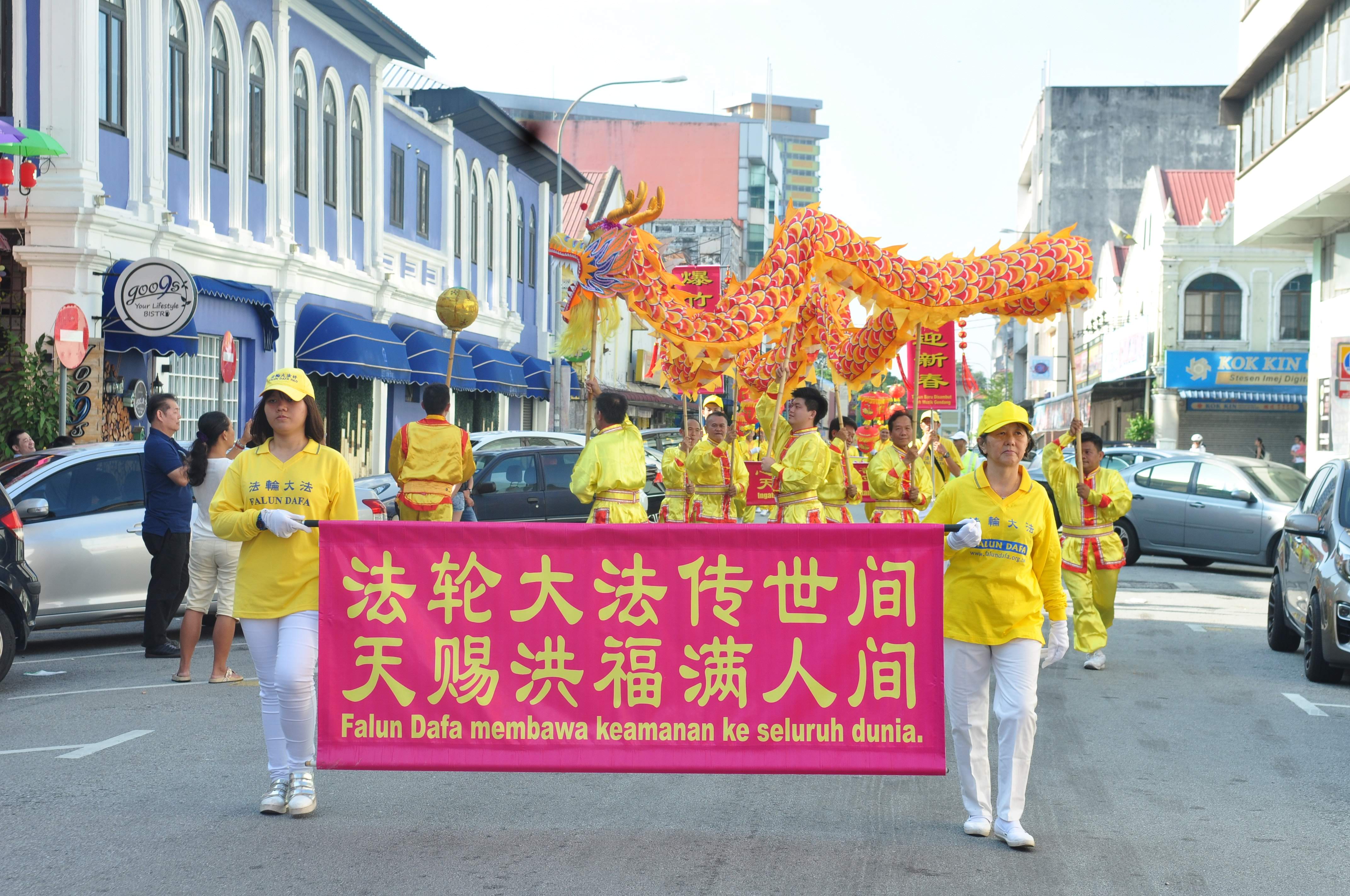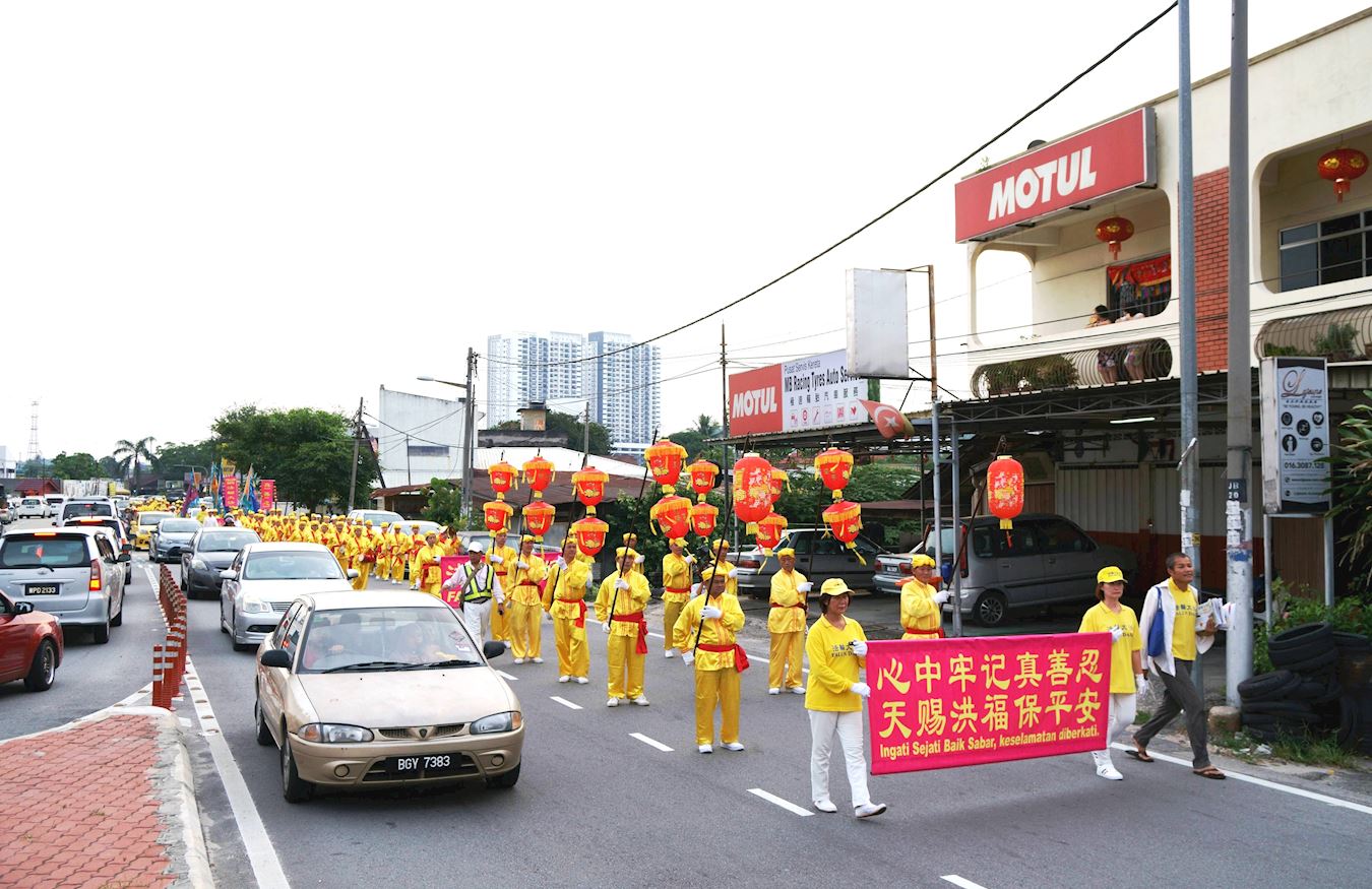 法轮功学员在马来西亚武吉甘密游行,向民众贺年