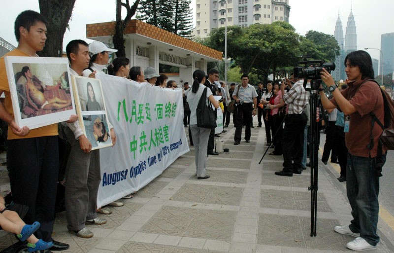 马国法轮功学员抗议中共借口奥运加剧迫害