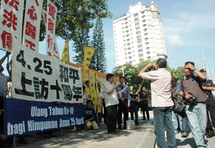 马来西亚法轮功学员在中领馆举办"纪念四•二五和平上访16周年"集会