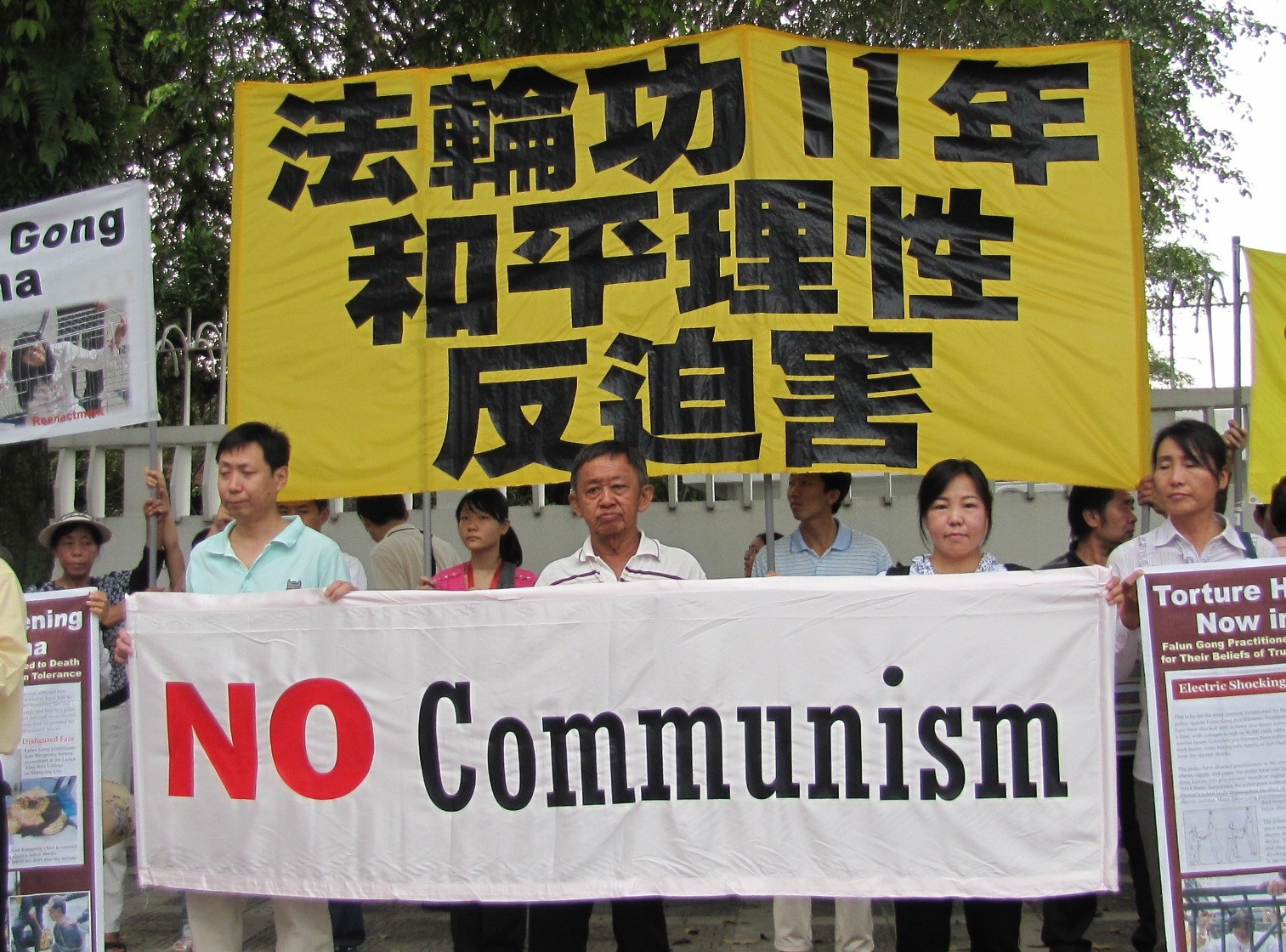 法轮功学员在中共驻马大使馆附近举行七.二零集会