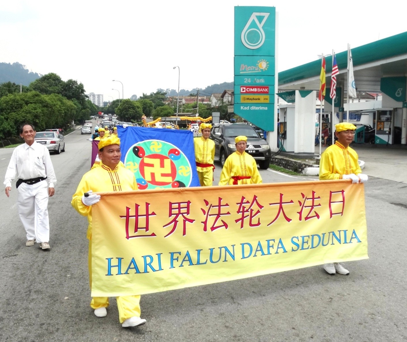马来西亚法轮功学员举办游行活动,欢庆"世界法轮大法日"恭祝师父华诞