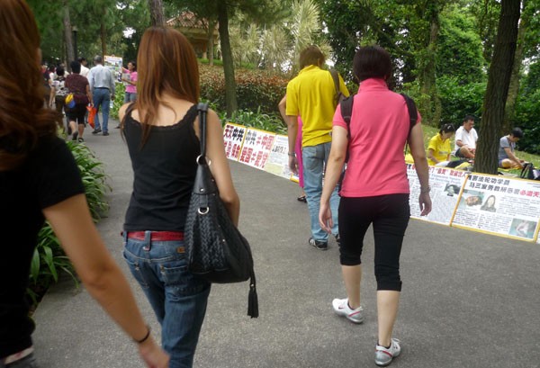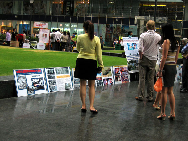 新加坡法轮功学员向民众讲真相的回顾,图为人们关注中共灭绝人性的迫害