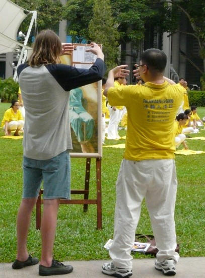 新加坡学员劝诫警察勿骚扰法轮功学员:警察经常对准学员摄像