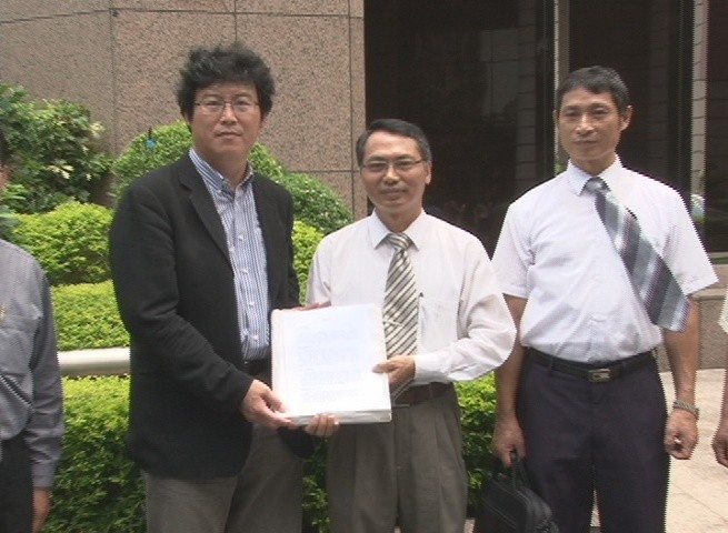 中央社报导法轮功学员在首尔中共大使馆前举行记者会要求法办迫害法轮功学员的凶手2008-8-25