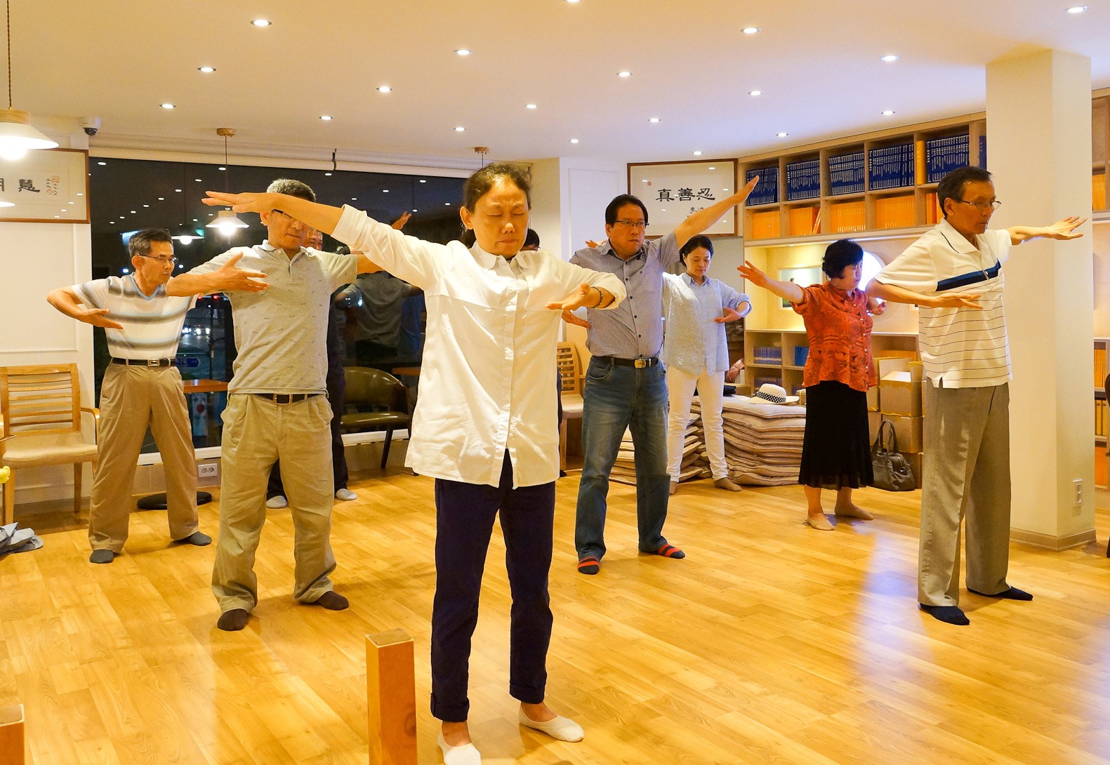 首尔天梯书店举办法轮功九天班,新学员学炼神通加持法