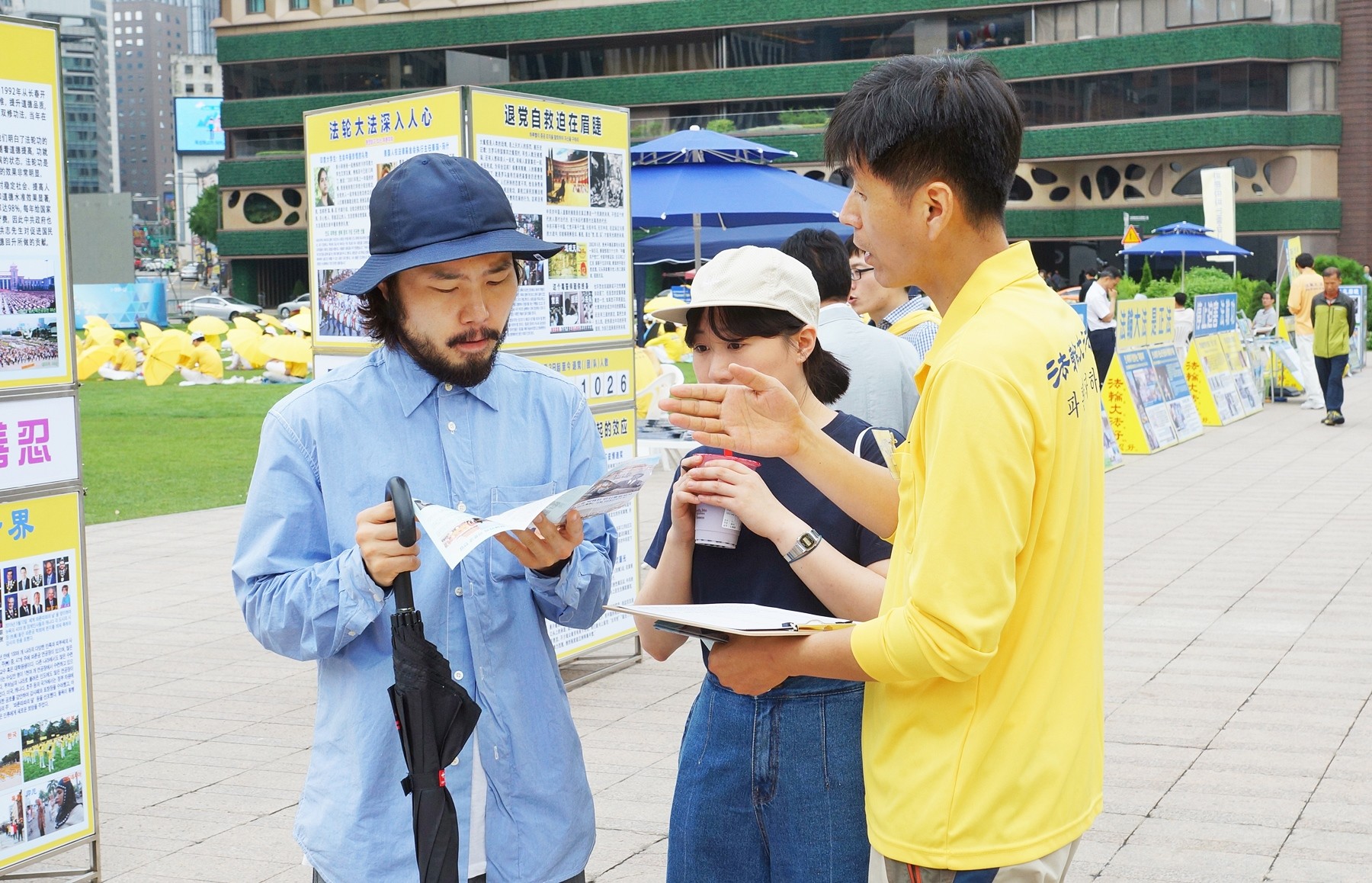 韩国法轮功学员在明洞举行悼念活动,揭露中共的残酷迫害图为学员向民众讲真相2006-7-8
