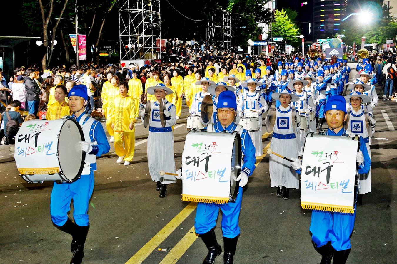 韩国大邱最大庆典,法轮功学员参加盛大的游行,并获得大会颁发的鼓励奖。