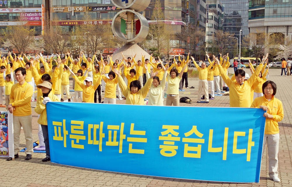 法轮大法遭镇压5周年 韩国学员集体练功讲真相