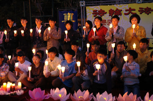 韩国民众与法轮功学员共庆世界法轮大法日 图为烛光悼念被迫害致死的同修