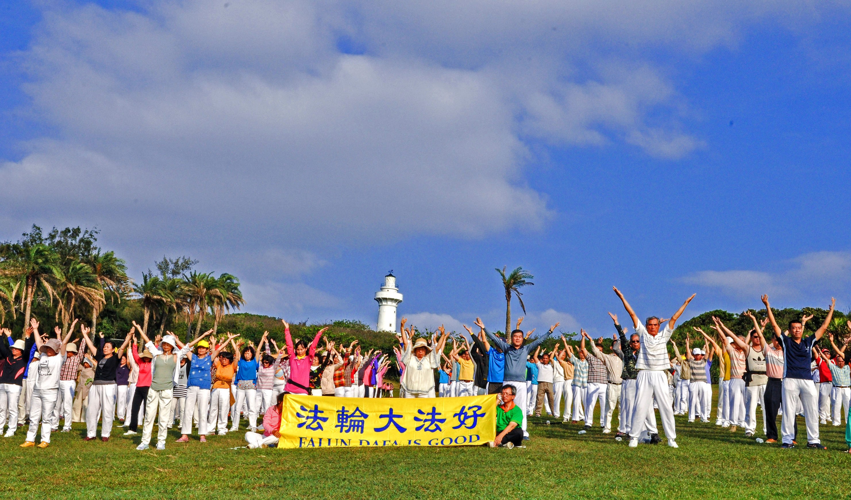 轮功学员于台湾最南端之一鹅銮鼻灯塔前炼功弘法庆祝"五一三"世界法轮大法日