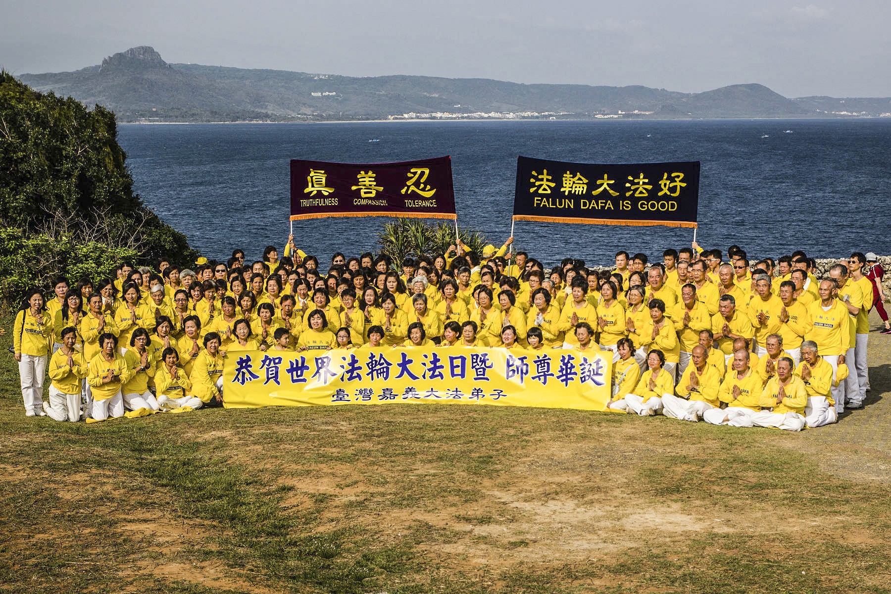 法轮功学员于台湾最南端之一猫鼻头炼功弘法,庆祝"五一三"世界法轮大法日并恭祝师尊生日快乐