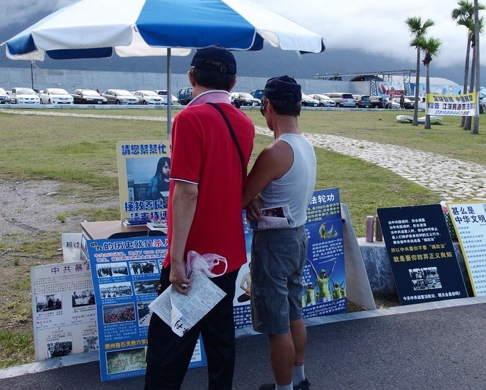 法轮功学员在花莲的旅游胜地丰滨乡征签讲真相,民众签名支持制止迫害。