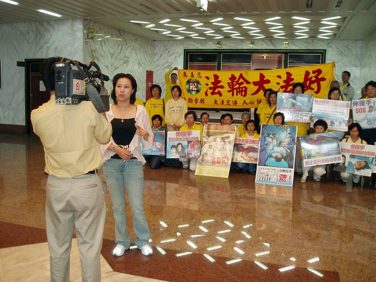 花莲法轮功学员在县议会请愿谴责中共盗卖活体器官图为:接受地方电视采访2006-5-30