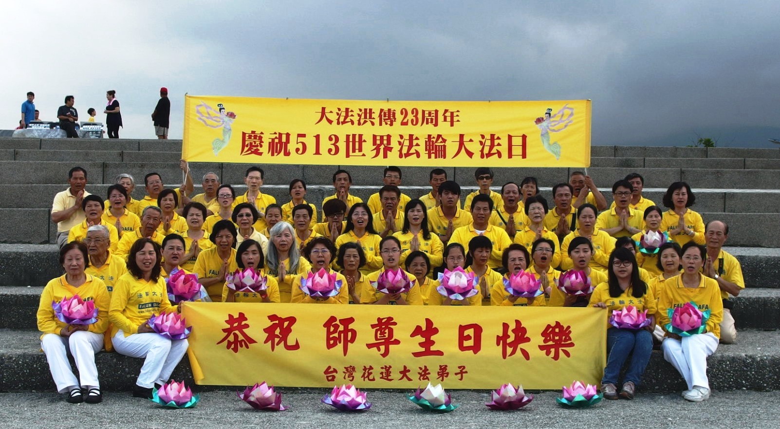 大法弟子花莲庆祝世界法轮大法日,集体恭祝师尊生日快乐