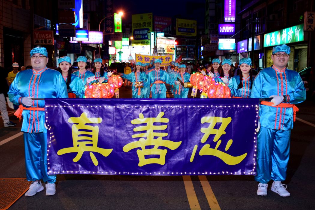 台湾灯会,学员展现修炼的美好图为学员向民众介绍法轮功