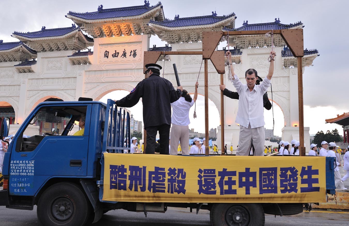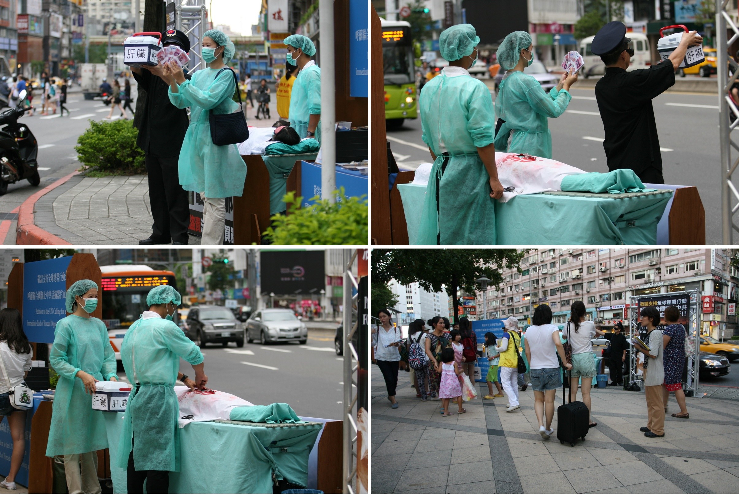 台北反迫害大游行,模拟演示,揭露中共活摘法轮功学员器官