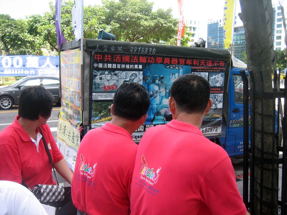 台北反迫害大游行 呼唤良知 - 当揭露中共活摘器官的广播宣传车经过,大陆游客侧着耳朵,睁大眼睛