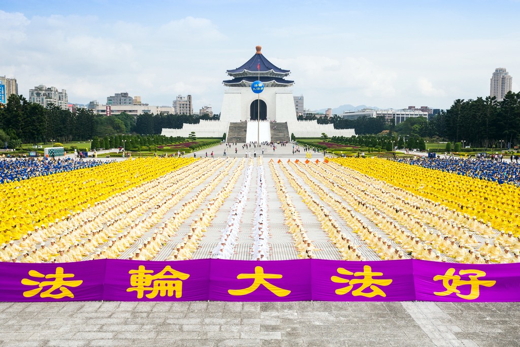 近六千名法轮功学员在台湾台北自由广场集体炼功