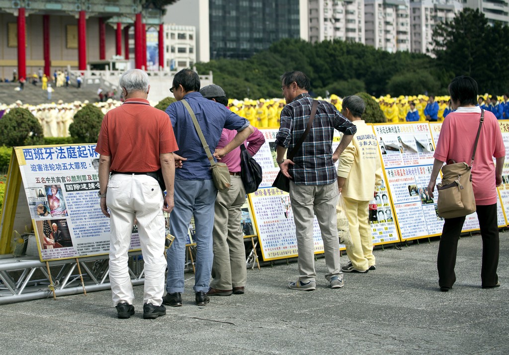 台湾法轮功学员大型排字活动,图为迫害真相的展版