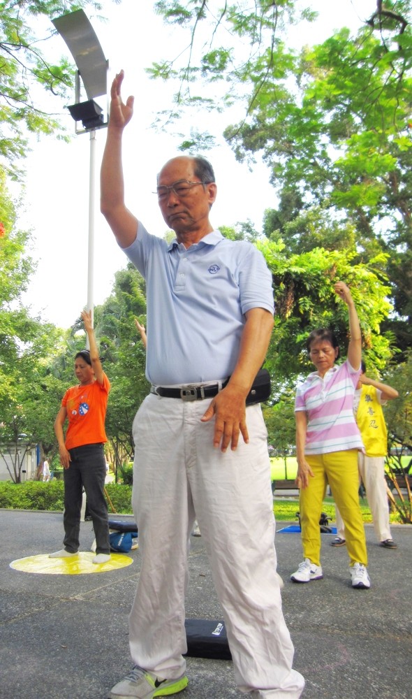 法轮功学员在台北市荣星花园集体炼功