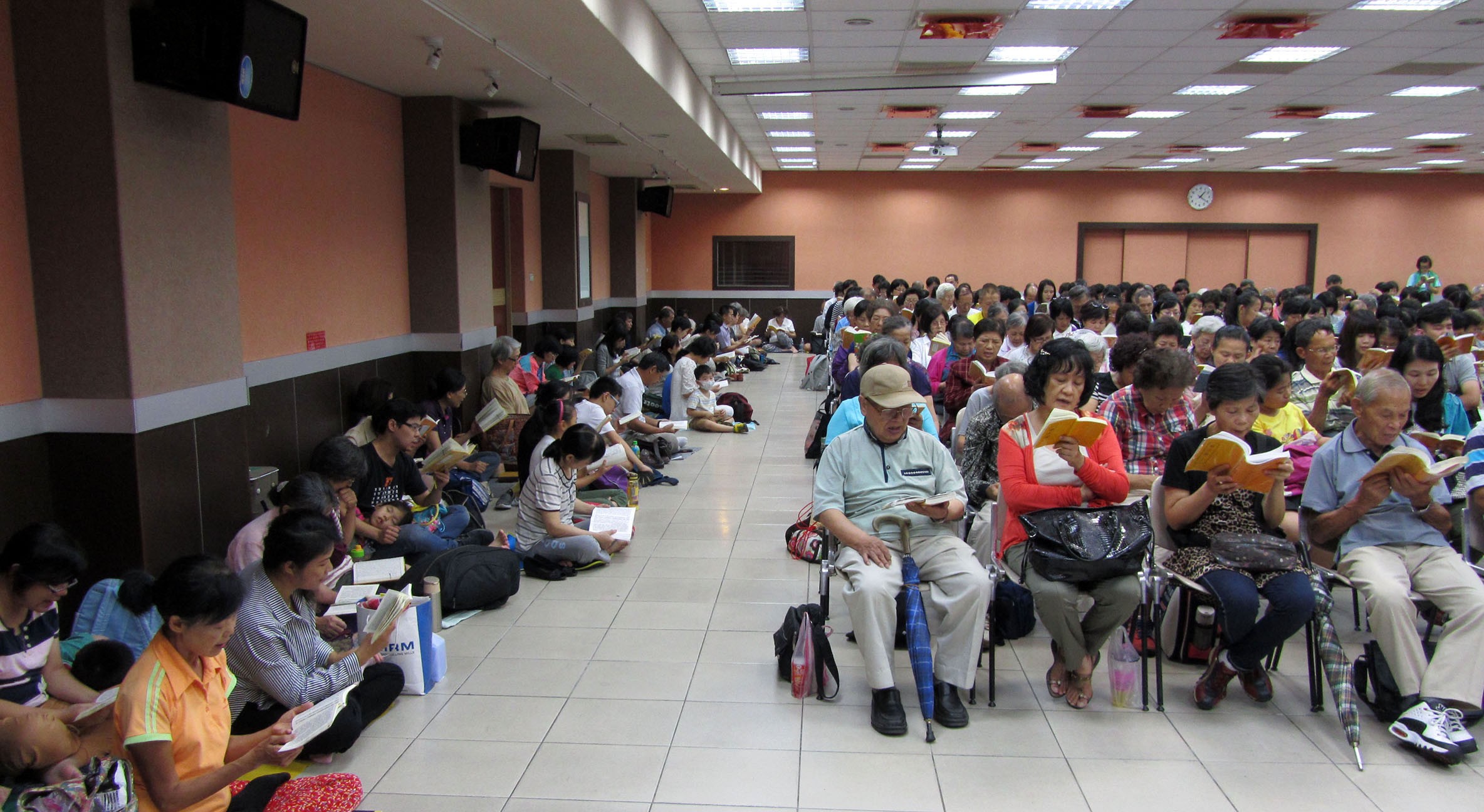 老当益壮的读书会平均年龄七十多,刚开始只能用台语,现在可以把《转法轮》念下来,