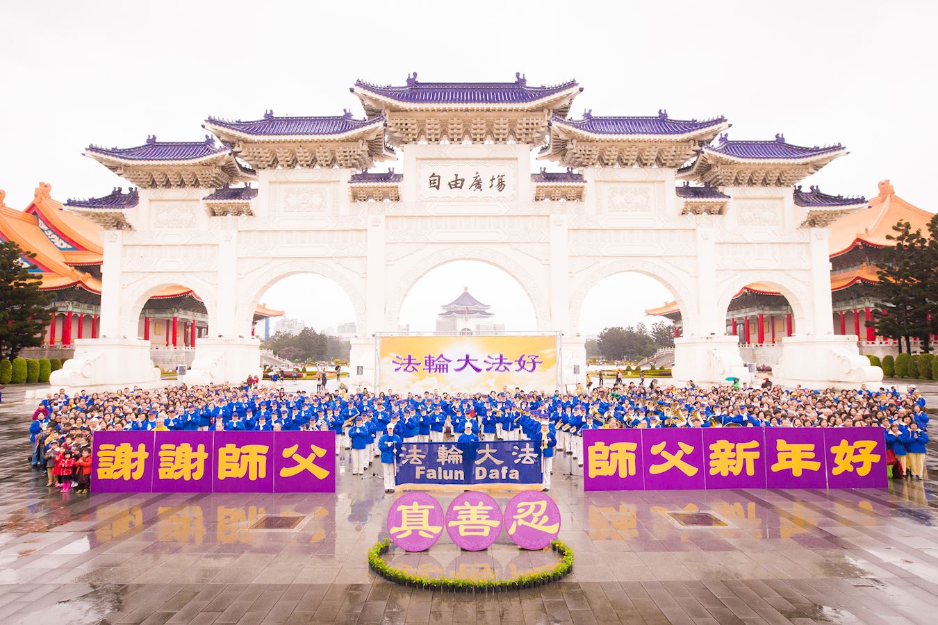 近三千名法轮功学员齐聚台北──恭祝师尊新年好