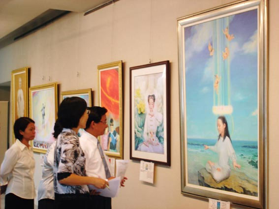 法轮大法洪传台湾台南:图为在台南成功大学举办"真善忍国际美展"