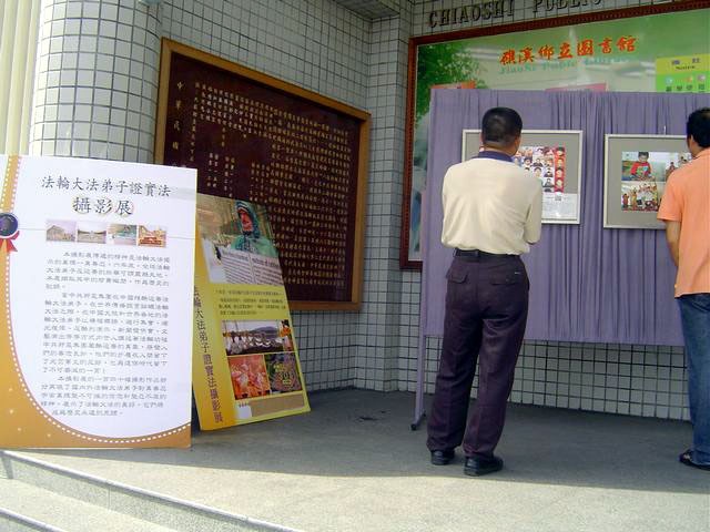 台湾宜兰的证实法摄影展 图书馆门口的摄影展说明