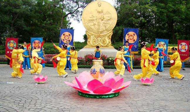 法轮功学员在旅游盛会上演示功法